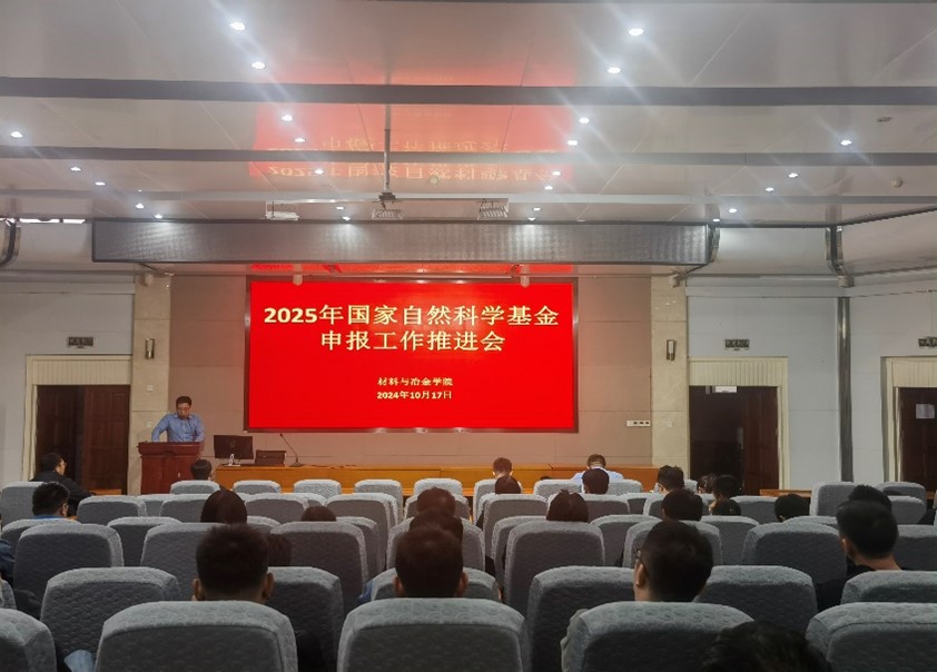 10月18日,材料與冶金學院召開2025年國家自然科學基金申報工作推進會,以進一步提升國家自然科學基金項目的申報質量和資助率。全院教師參加會議,會議由副院長(主持行政工作)艾新港教授主持。