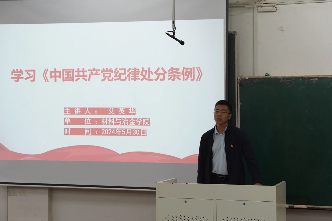 為了進一步加強黨的紀律建設,提高師生黨員的廉潔自律意識,2024年5月30日,學院在博學樓C102召開黨紀學習教育專題報告會,院黨委副書記、副院長兼紀委書記艾英華及全體學生黨員參加會議。