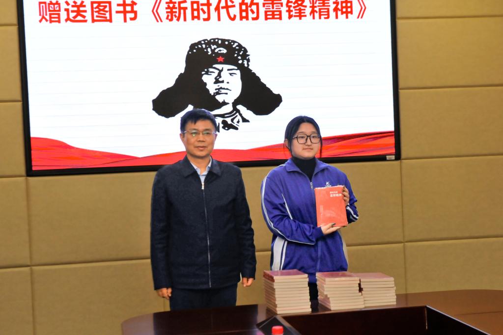 班會期間,李平就《雷鋒日記》中的“雷鋒七問”與同學們互動交流,并為同學們贈送《新時代的雷鋒精神》一書。