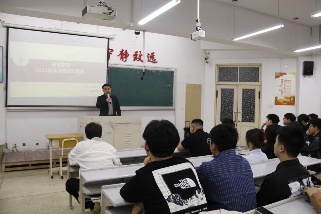 為提高電信學院2021級學生四級考試的整體通過率,學院于3月31日在博聞樓九合召開2021級英語四級動員會。會議由電信學院黨委副書記由濟愷擔任主持,相關輔導員及2021級未通過四級考試的全體學生參加。