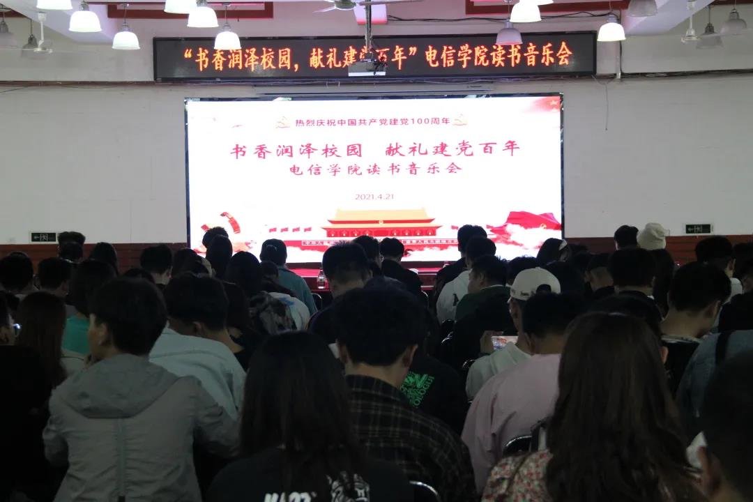 為紀(jì)念建黨百年,在世界讀書日來臨之際,帶領(lǐng)學(xué)院青年學(xué)生感受百年崢嶸歲月,領(lǐng)略千年紅色傳承,4月21日,電信學(xué)院于明德樓大學(xué)生活動中心舉辦“書香潤澤校園,獻禮建黨百年”讀書音樂會。電信學(xué)院學(xué)生工作負(fù)責(zé)人王會立、2020級學(xué)生代表參加此次活動。