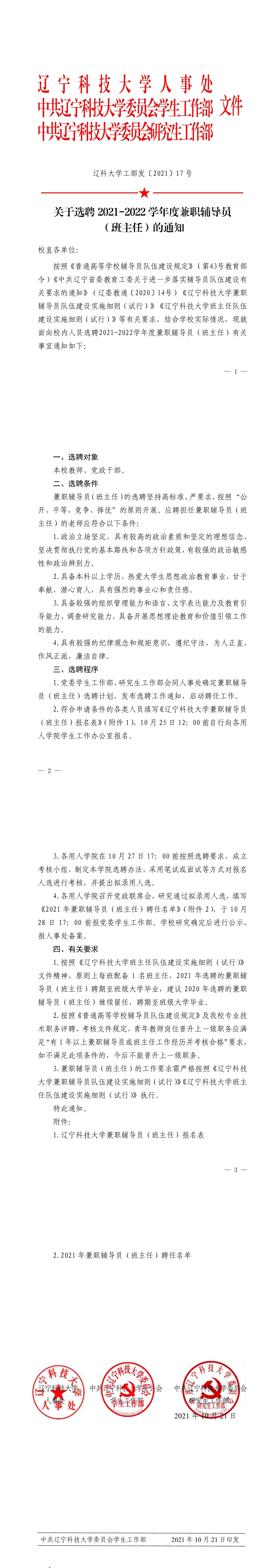 關于選聘2021-2022學年度兼職輔導員(班主任)的通知
