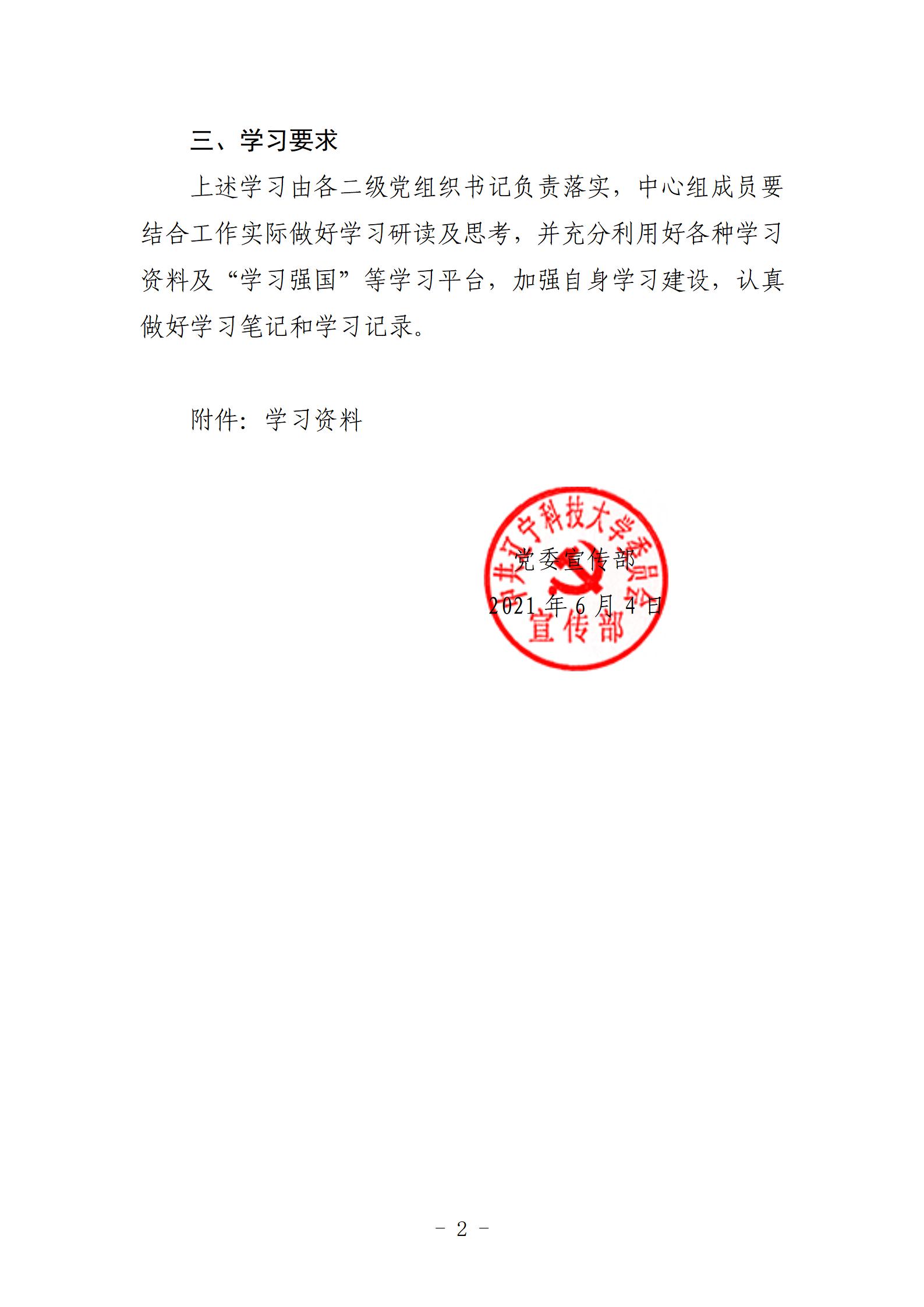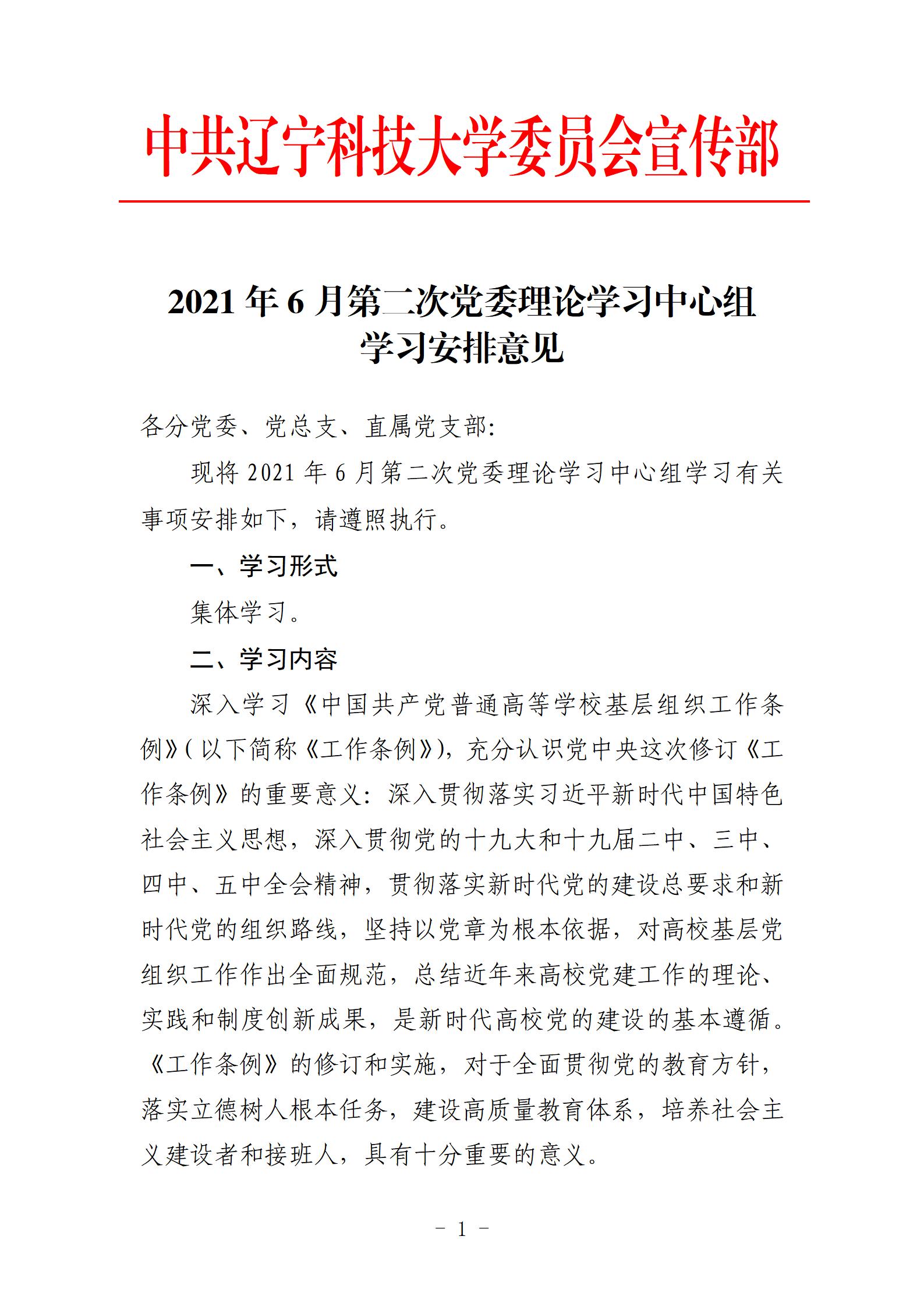 2021年6月第二次黨委理論學(xué)習(xí)中心組學(xué)習(xí)安排意見