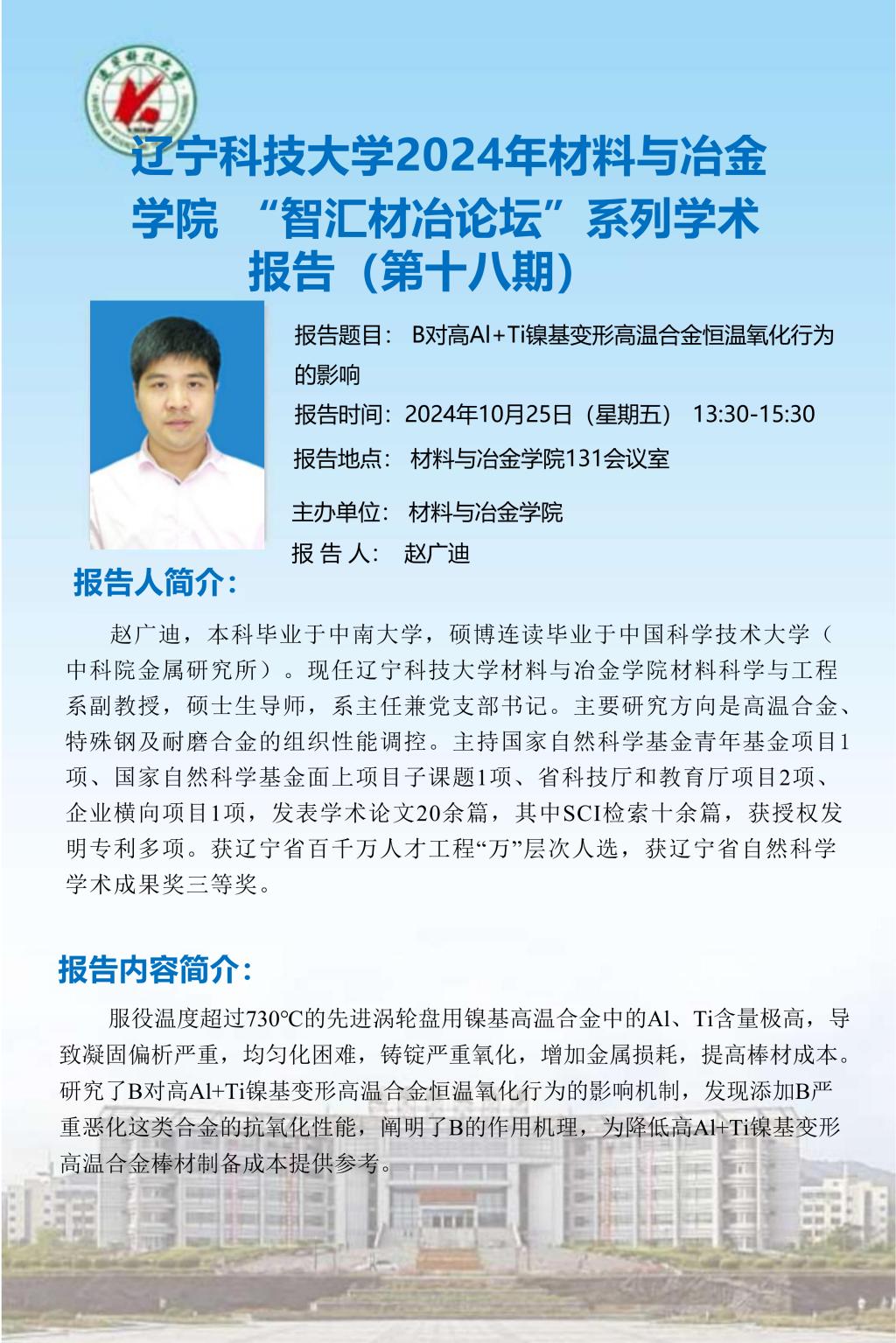 學(xué)術(shù)預(yù)告:B對高Al+Ti鎳基變形高溫合金恒溫氧化行為的影響