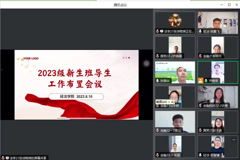 8月10日上午,經法學院通過騰訊會議召開2023級新生班導生工作布置會議。經法學院黨委書記趙智博、黨委副書記張國華、學辦主任齊艷萍及團委副書記張鵬飛出席會議,全體2023級新生班導生參加了本次會議。