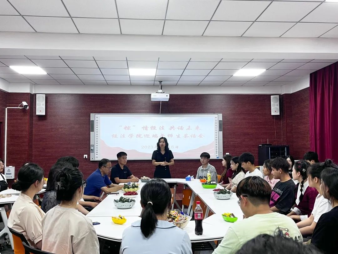 6月18日,經法學院于博識樓A407召開“‘粽’情經法 共話未來”迎端午師生茶話會,本次活動由經法學院學辦主任齊艷萍主持,學院黨委書記趙智博、黨委副書記張國華、團委副書記張鵬飛、畢業生代表、藏族學生代表以及各班級學生骨干共約50人參加了活動。