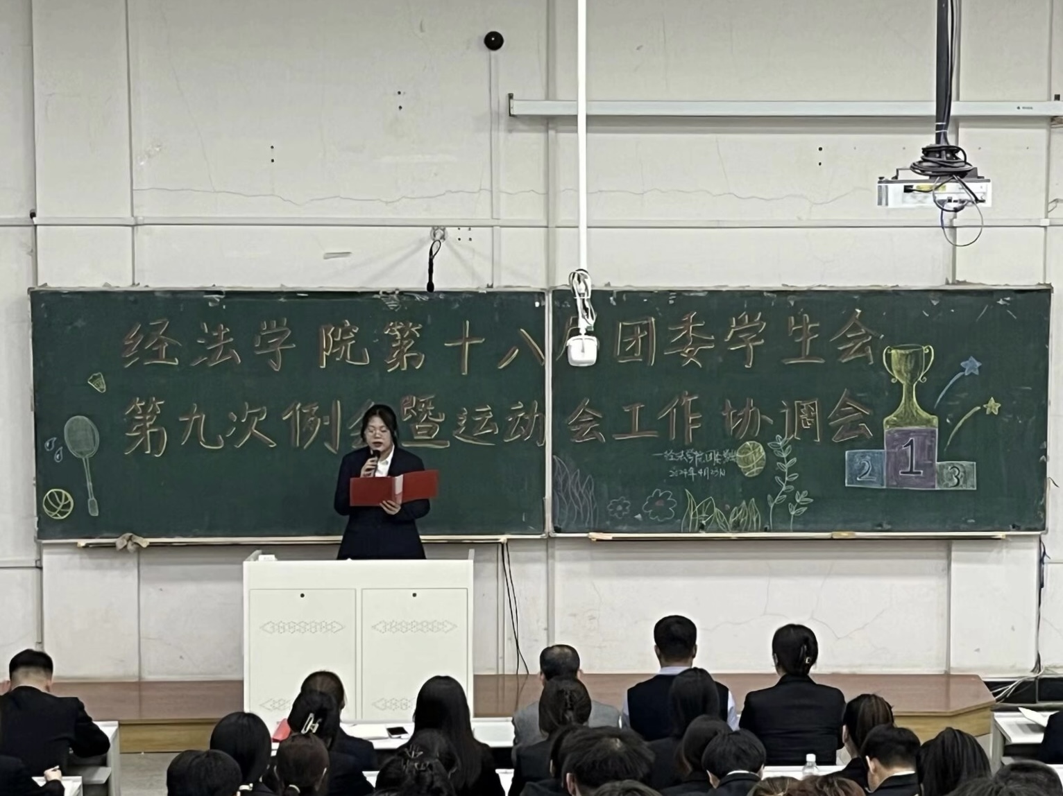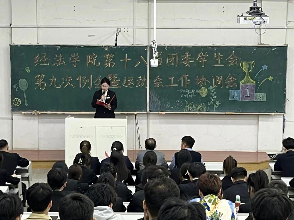 4月23日,經法學院于博學樓C302召開第十八屆團委、學生會第九次例會暨運動會工作協調會。本次會議由學院團委副書記張鵬飛主持,學院黨委副書記張國華出席會議、全體團學骨干以及運動員共計160余人參加會議。