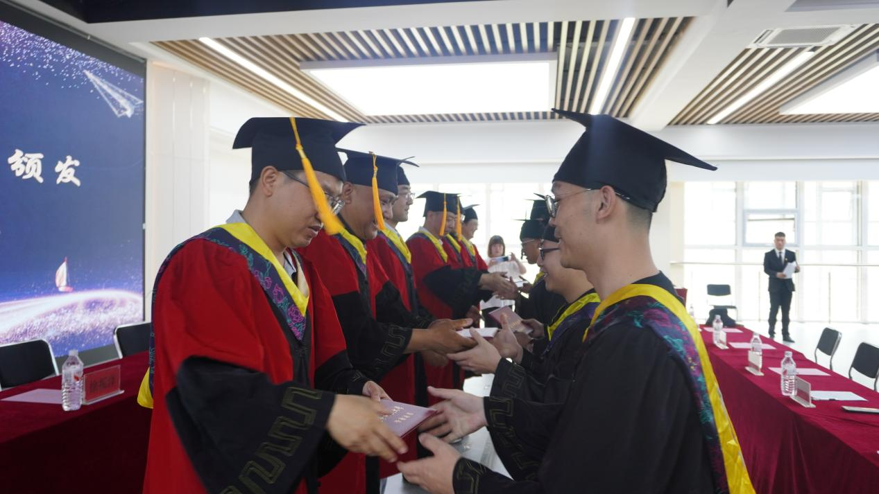 在畢業(yè)典禮儀式環(huán)節(jié),學院領導班子成員為畢業(yè)生們擬授畢業(yè)證書,并為他們莊重地撥正流蘇。撥穗儀式象征著畢業(yè)生們學有所成,即將開啟人生新的篇章。畢業(yè)生們身著學位服,滿懷喜悅地走上臺,與領導和老師們合影留念,記錄下這一人生中的重要時刻。