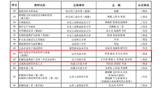 此次獲獎(jiǎng)的5部教材涵蓋了材料科學(xué)與工程、機(jī)械工程、土木工程等專業(yè)領(lǐng)域,內(nèi)容豐富、特色鮮明,具有較高學(xué)術(shù)價(jià)值和教學(xué)實(shí)用性。其中,李雪、夏壘、井玉安等主編的《材料成型過(guò)程傳熱原理與設(shè)備(第2版)》,以及王立萍、廖桂兵、樸景威等主編的《機(jī)械設(shè)備維修工程學(xué)(中英文對(duì)照)》獲評(píng)二等獎(jiǎng);張鐵志主編的《公路工程技能實(shí)訓(xùn)教程》,田雨澤、閆明祥主編的《土木工程施工技術(shù)與組織》,以及王麗、汪江主編的《圖說(shuō)外國(guó)經(jīng)典歷史建筑——18世紀(jì)末葉以前》獲評(píng)三等獎(jiǎng)。