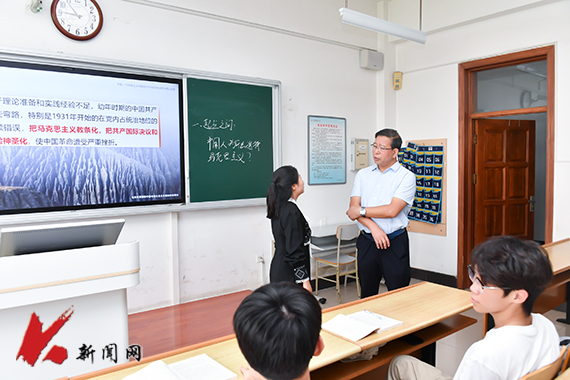 胡軍走進(jìn)博學(xué)樓A406教室,聽取了馬克思主義學(xué)院教師羅金講授的“毛澤東思想和中國(guó)特色社會(huì)主義理論體系概論”課程。課堂上,羅金充分利用信息化教學(xué)設(shè)備,通過(guò)慕課平臺(tái)完成分組討論、在線搶答等教學(xué)環(huán)節(jié),調(diào)動(dòng)學(xué)生積極性。胡軍對(duì)教師備課給予充分肯定,同時(shí)指出,思想政治理論課是高校落實(shí)立德樹人根本任務(wù)的主渠道、主陣地,要合理安排教學(xué)內(nèi)容,有效激發(fā)學(xué)生學(xué)習(xí)黨的創(chuàng)新理論的內(nèi)驅(qū)力,切實(shí)促進(jìn)理論教學(xué)與社會(huì)實(shí)踐相互融合,為黨和國(guó)家培養(yǎng)德才兼?zhèn)涞母咚刭|(zhì)人才。