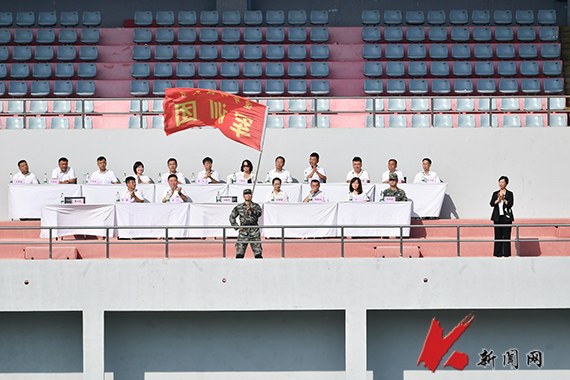 開(kāi)營(yíng)式上,孫曉華為軍訓(xùn)團(tuán)授團(tuán)旗。宣傳部、黨政辦公室、后勤與基建管理處、武裝部負(fù)責(zé)人作為校軍訓(xùn)團(tuán)副團(tuán)長(zhǎng),校團(tuán)委負(fù)責(zé)人作為校軍訓(xùn)團(tuán)參謀長(zhǎng)分別為各中隊(duì)授中隊(duì)旗。武裝部負(fù)責(zé)人在動(dòng)員講話(huà)時(shí)表示,軍訓(xùn)是青年學(xué)生履行國(guó)防義務(wù)、接受?chē)?guó)防教育的重要形式,是砥礪意志品質(zhì)、激發(fā)愛(ài)國(guó)熱情的關(guān)鍵一課。通過(guò)嚴(yán)格的軍事訓(xùn)練,青年學(xué)生將進(jìn)一步強(qiáng)化組織觀念,磨煉頑強(qiáng)作風(fēng),增強(qiáng)團(tuán)隊(duì)意識(shí),提升綜合素養(yǎng)。希望同學(xué)們?cè)趽]灑汗水的過(guò)程中,深刻體會(huì)軍人情懷,感悟奉獻(xiàn)精神,把個(gè)人理想融入國(guó)家發(fā)展大局。軍訓(xùn)教官代表吳文彬、新生代表化學(xué)工程學(xué)院應(yīng)化2025.2班李春雨作表態(tài)發(fā)言,他們一致表示,要不辭辛苦、互敬互愛(ài)、相互幫助,確保軍訓(xùn)順利進(jìn)行。