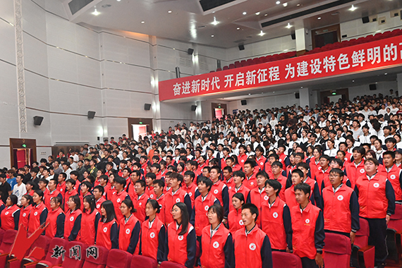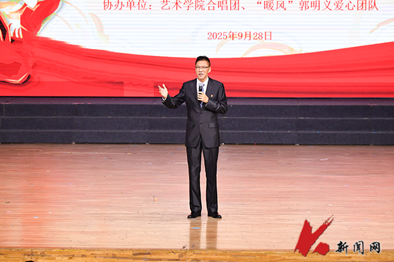 活動中,王明明以“永遠跟黨走,紅歌里的黨史課”為主題,以中國共產黨百年奮斗歷程為主線,系統梳理了不同歷史時期的經典紅色歌曲,用音樂串聯起波瀾壯闊的黨史畫卷。《山丹丹開花紅艷艷》《松花江上》《社會主義好》《春天的故事》《跟黨走》《雷鋒精神代代傳》,師生們在一首首經典紅色歌曲里憶崢嶸歲月。藝術學院合唱團演繹的《黃河大合唱》選段將活動氣氛推向高潮。“暖風”團隊100余名志愿者與全場觀眾齊聲朗誦毛澤東詩詞《沁園春·雪》,歷史情懷與時代豪情在旋律中交融升華。