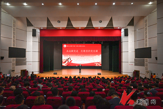 王明明結合自身創作初心與藝術實踐,深入淺出地闡釋了如何將國家發展與人民情感熔鑄于歌詞旋律中,使歌曲既“貼近群眾”又“立意高遠”,引領師生穿越百年風云,重溫黨的光輝歷程;用通俗易懂的語言生動解讀歌曲背后的故事,讓黨史學習變得“可聽、可感、可共鳴”,真正實現了“以歌敘史、以樂化人”的育人效果。