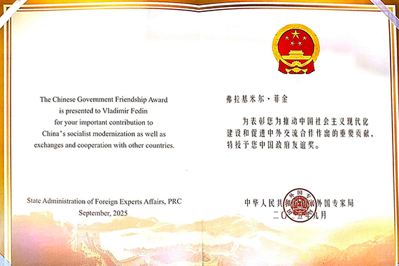 作為中國政府于1991年正式設(shè)立的國家級榮譽,中國政府友誼獎旨在表彰為中國改革發(fā)展作出重要貢獻的來華工作外國專家。2025年,全國共有50名專家獲此殊榮。學校國際處相關(guān)負責同志表示,F(xiàn)edin院士的獲獎是中俄科研人員攜手同行的生動寫照,更是學校國際交流合作戰(zhàn)略的重要里程碑;既是對學校高端引智工作的肯定,也彰顯了學校在服務(wù)“一帶一路”倡議、深化中俄科技合作中的積極作為。未來,遼科大將進一步深化與俄羅斯科學院西伯利亞分院等國際頂尖機構(gòu)的合作,依托“一帶一路”聯(lián)合實驗室等平臺,持續(xù)推進功能材料領(lǐng)域的科研創(chuàng)新與人才培養(yǎng),為東北振興注入國際合作新動能,為中俄科技友誼續(xù)寫新篇章。(供稿單位:國際處 圖片來源:國際處)