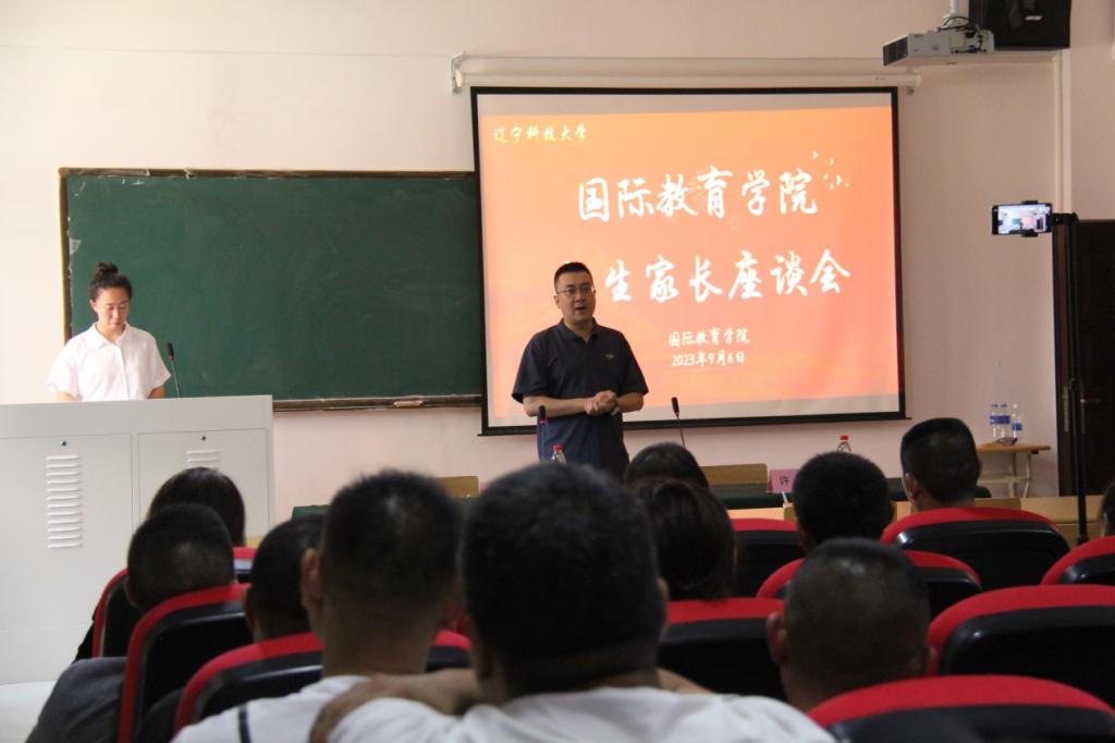 9月6日下午,國際教育學院2023級新生家長座談會在博遠樓105會議室召開,會議采用線上線下相結合的形式舉行。學院直屬黨支部書記宋華、副院長鄭云超、副院長許凡及全體新生家長參加會議。會議由輔導員張翀睿主持。