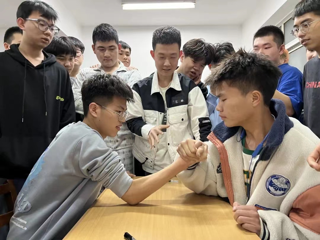 疫情封校不封心,同學(xué)在各項(xiàng)活動(dòng)中展現(xiàn)自己,放飛自我,發(fā)揮出自己最好的水平。學(xué)生骨干指導(dǎo)新接觸跳繩比賽的同學(xué),幫助她們克服心理恐懼,成功邁出第一步。打沙包比賽中,你來我往的默契配合引得掌聲不斷,輕松活躍的氣氛感染著在場(chǎng)的同學(xué)們。緊張又激烈的掰手腕大賽吸引了各個(gè)年級(jí)50余名同學(xué)參賽,一輪輪淘汰賽不斷引爆著現(xiàn)場(chǎng)的氣氛,彰顯著土木力量。