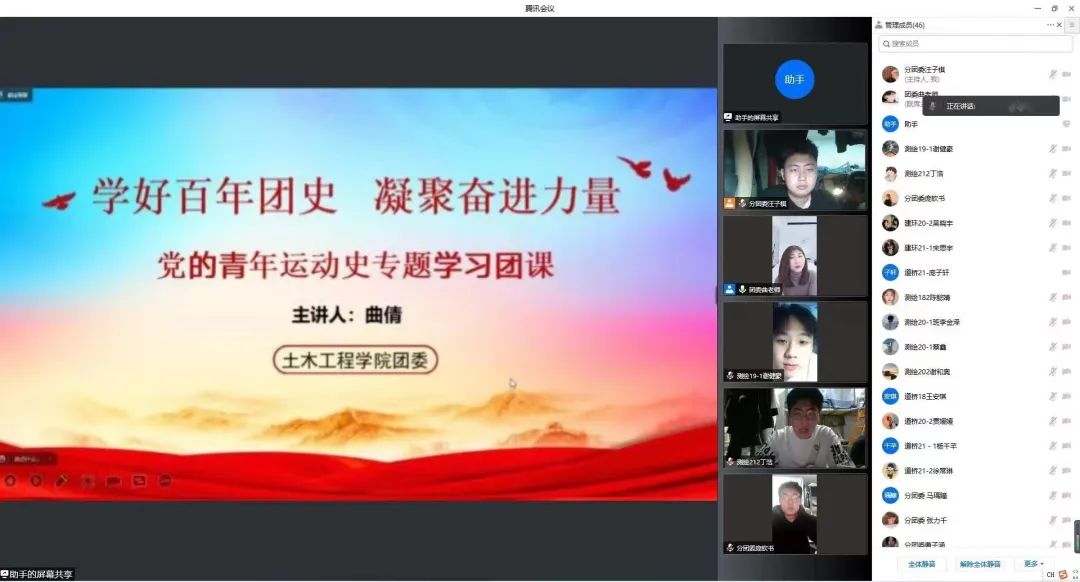 本次團(tuán)課介紹了早期青年團(tuán)組織的誕生、共青團(tuán)協(xié)助共產(chǎn)黨掀起革命浪潮、新民主主義青年團(tuán)三大和青年團(tuán)改名等不同階段黨的青年運(yùn)動(dòng)輝煌歷史,幫助青年團(tuán)員通過(guò)共同重溫黨的青年運(yùn)動(dòng)百年輝煌歷史來(lái)努力提高自己的政治意識(shí)、組織意識(shí)和模范意識(shí),從而激發(fā)青春夢(mèng)想力量,讓廣大土木學(xué)子以飽滿精神面貌迎接黨的二十大的勝利召開。