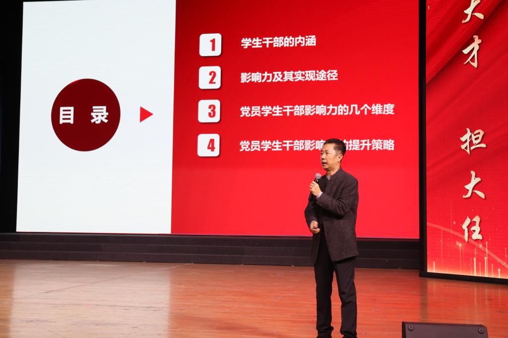 第三講馬克思主義學院院長楊洪澤以“以仁合眾,以學增能”為中心,圍繞學生干部的內涵,學生干部影響力及其實現途徑,學生干部影響力的幾個維度,學生干部影響力的提升策略等方面,深入分析了學生干部的非權利性影響力。