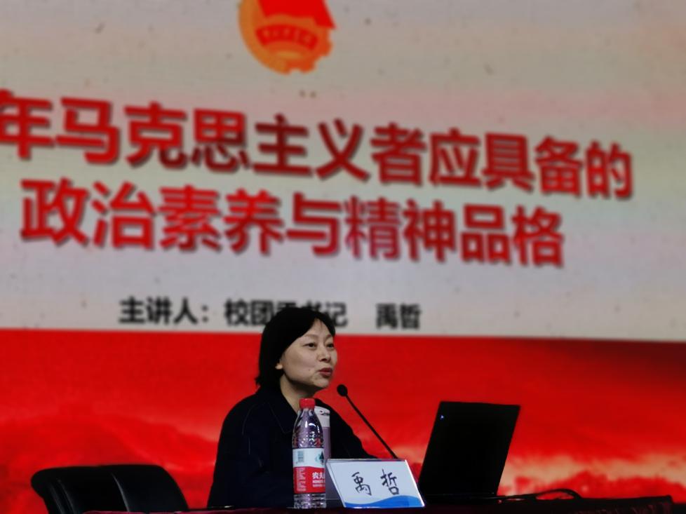 第二講校團委書記禹哲,圍繞馬克思主義對中國早期青年的思想啟蒙及對新時代中國青年的精神引領,青年馬克思主義者應具備的政治素養與精神品格等方面進行分析。希望廣大團員青年在今后的學習生活中做到恪守學生本分,摒棄庸俗習氣,帶頭勤奮學習,牢記服務宗旨,扎扎實實做事。