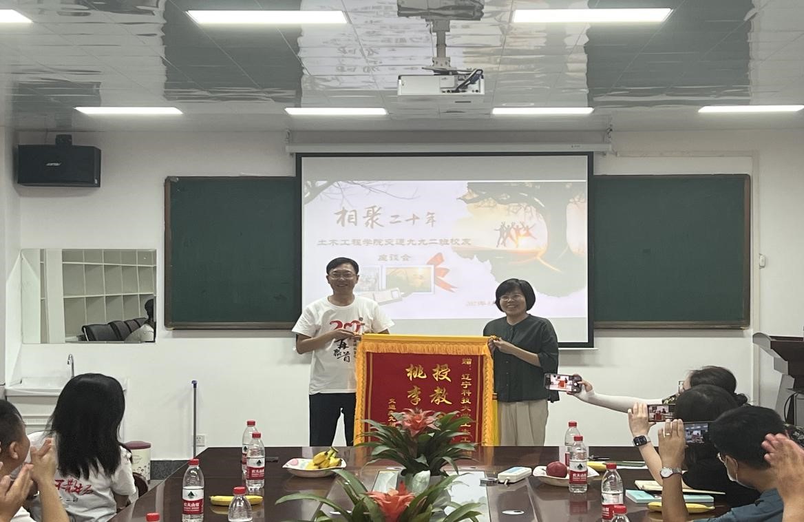 班長王井友代表全體校友發(fā)言,對學(xué)校校友辦、學(xué)院領(lǐng)導(dǎo)及老師的支持幫助和熱情接待表示感謝,回憶起往日師生情也非常感動,并向?qū)W院饋贈錦旗表達(dá)對母校的感恩之情。座談氣氛輕松,情誼濃濃。與會校友紛紛表示要以此次交流為契機,支持學(xué)院工作,為母校發(fā)展多貢獻(xiàn)一份力量!