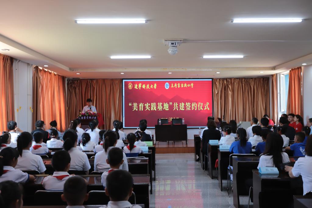為全面加強和推進新時代高校美育浸潤工作,堅持五育并舉,大力發展素質教育,919日,遼寧科技大學與阜蒙縣王府鎮蒙古族小學開展美育實踐基地共建活動,此次活動由藝術學院黨總支書記李寧主持,遼寧科技大學黨委書記李平、黨委副書記孫曉華,組織部部長田樹學、黨政辦公室主任李寧、機關黨委書記張樺楠、藝術學院院長兼美育中心主任李囝 、藝術學院副院長馬琳, 遼寧科技大學體育部副主任曲博、遼寧科技大學駐阜新地區第一書記、王府鎮蒙古族小學全體師生參與此次活動。