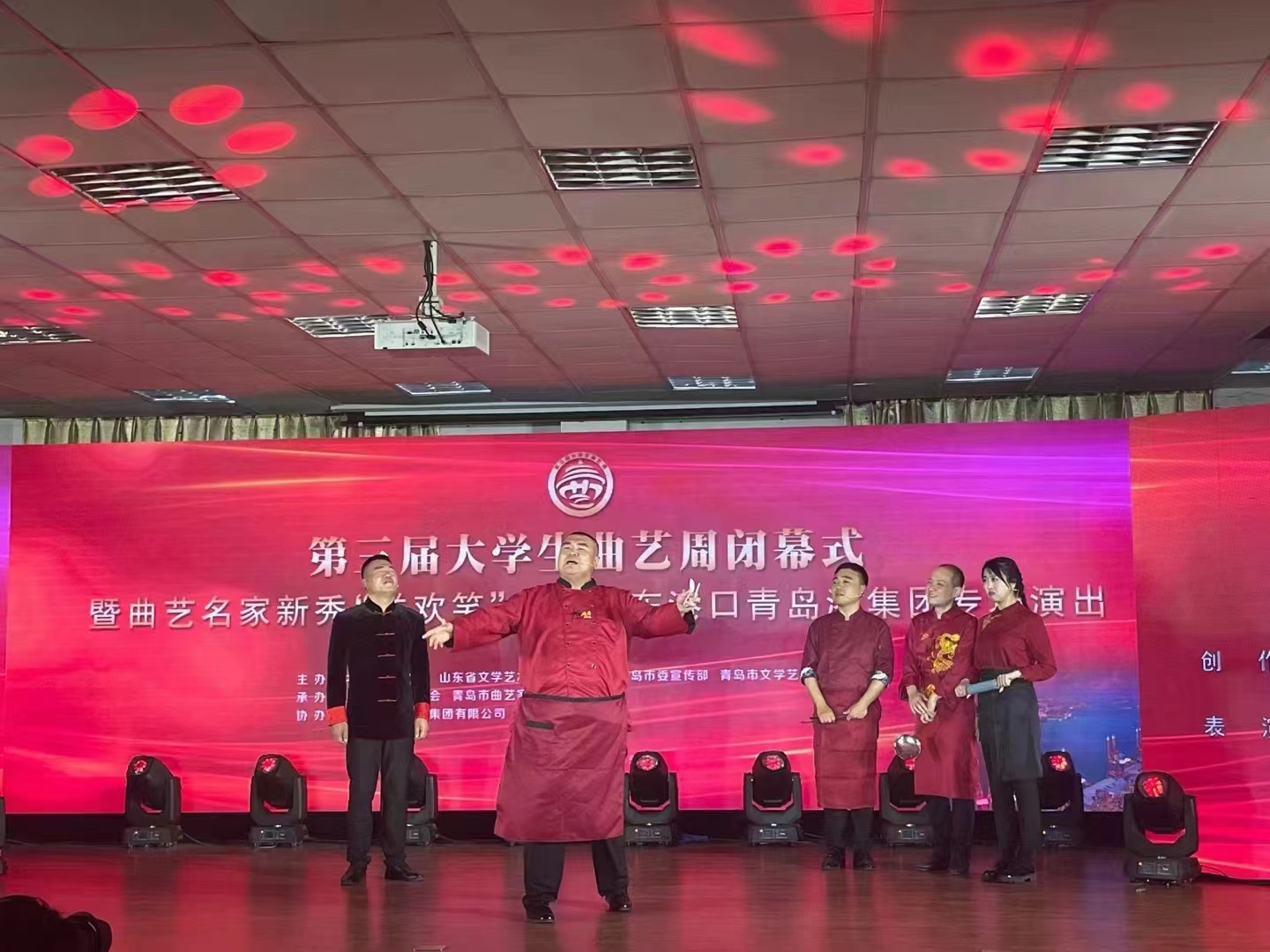 據了解,曲藝系胡曌斌老師也受邀參加“中國曲協曲藝名家新秀走進小劇場演出示范行動”走進青島曲藝社、第三屆大學生曲藝周閉幕式暨曲藝名家新秀“送歡笑”走進山東青島港專場演出以及中國曲協曲藝名家新秀“送歡笑”走進李滄專場三場演出活動。