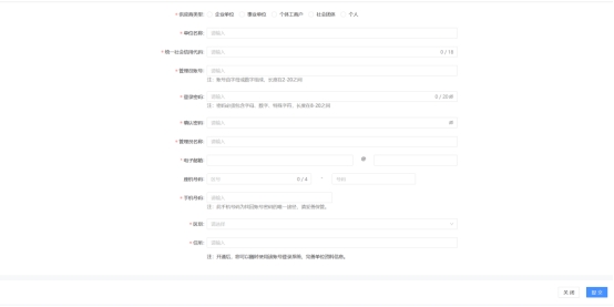 供應商填寫注冊的相關的信息,填寫完成提交即可。